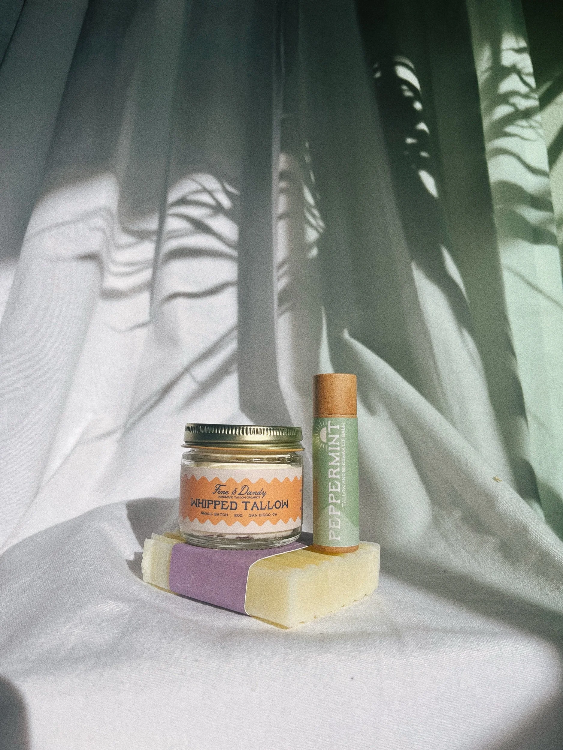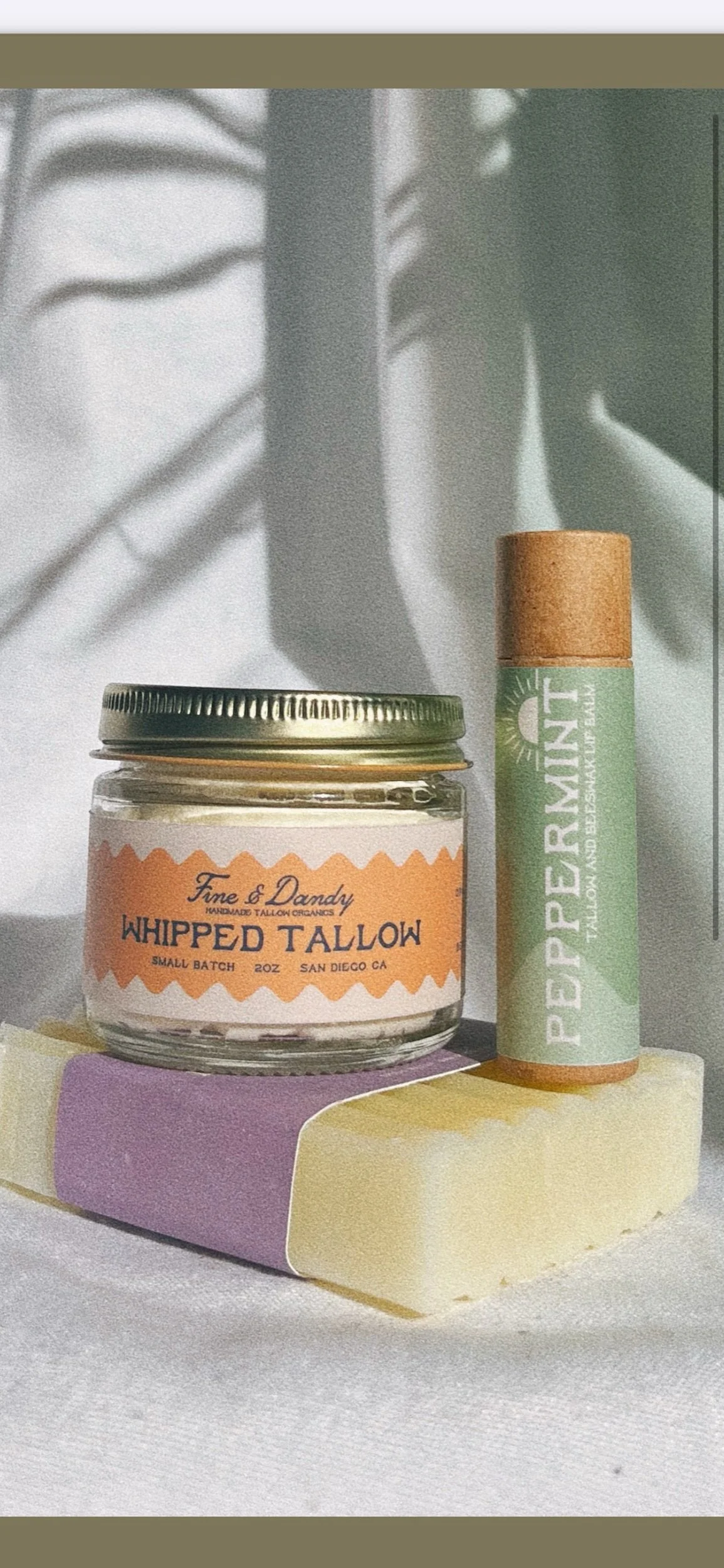 Shop Categories: Shop All BUNDLES! Tallow Salve Whipped Tallow Tallow Sunblock Tallow Bar Soap Shop All | BUNDLES! | Tallow Salve | Whipped Tallow | Tallow Sunblock | Tallow Bar Soap | Tallow Bar Soap & Whipped Tallow Bundle! from $31.00 View Options Tallow Bar Soap - Mistletoe $9.00 Add To Cart Added! Tallow & Beeswax Lip Balm $7.00 View Options Unscented Whipped Tallow $24.00 Add To Cart Added! Tallow Bar Soap - Florist $9.00 Sold Out Sold Out Added! Lavender Whipped Tallow $24.00 Add To Cart Added! Bergamot Tallow Salve $24.00 Add To Cart Added! Whipped Tallow & Emu Oil $28.00 Add To Cart Added! Tallow Bar Soap - Unscented $9.00 Add To Cart Added! Lavender Tallow Salve $24.00 Add To Cart Added! Tallow Bar Soap - Refresh $9.00 Add To Cart Added! Tallow Sunblock - 4oz $30.00 Add To Cart Added! Tallow Bar Soap - Lavender Citrus $9.00 Add To Cart Added! Bergamot Whipped Tallow $24.00 Add To Cart Added! Tallow Bar Soap - Coastal Winter $9.00 Add To Cart Added! Custom Collab or bulk order? Contact me